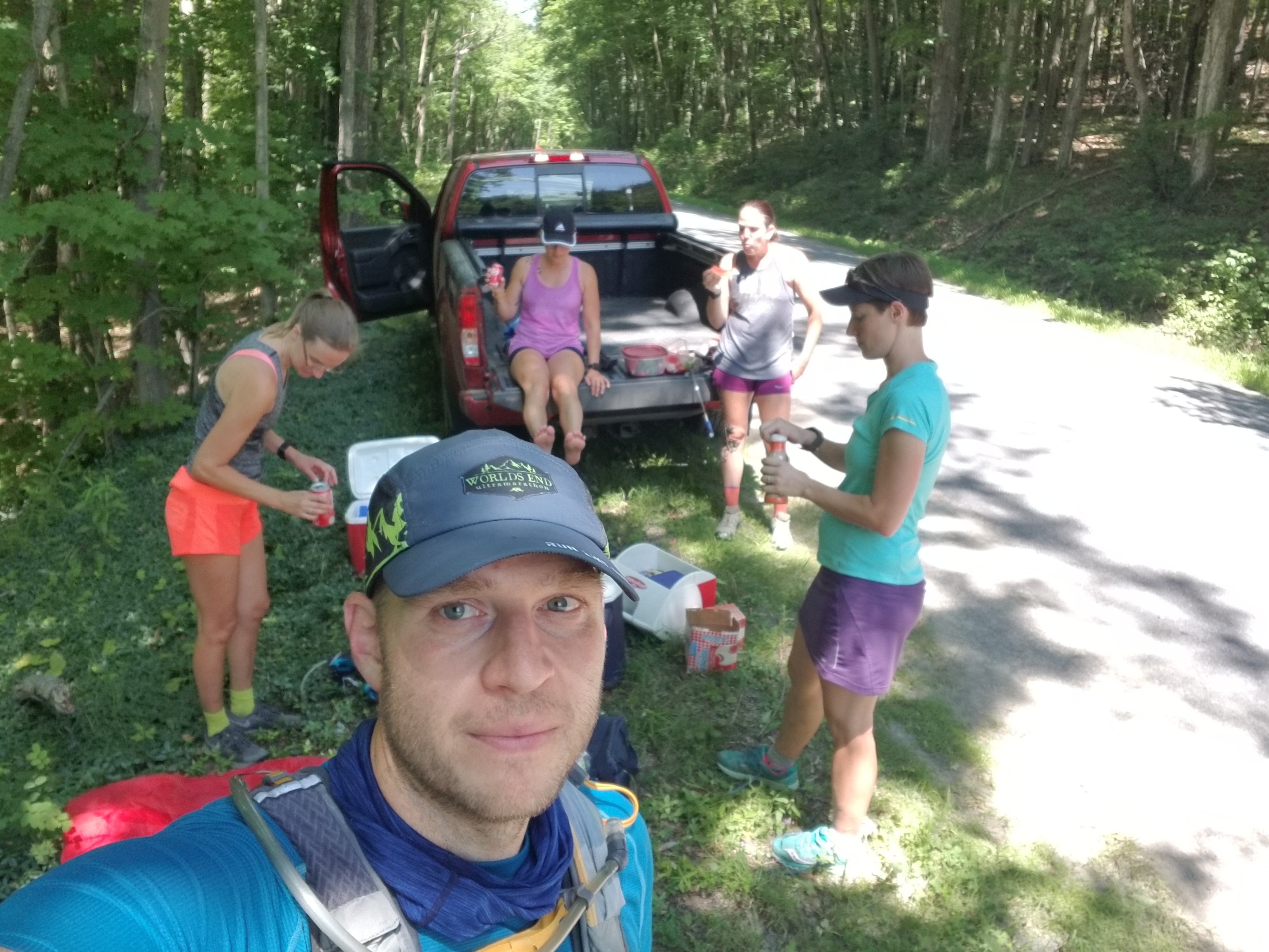 The beginning heading out of Birds Eye Hollow Park was a nice long relatively flat runnable section. We loved finding a really nice lean-to and camping spot during the early portion of the run. We were all anxious to reach the “Food Truck” at the halfway point. Then the never ending climbing started. When we reached the Sugar Hill area, we started to be ready to be done, some of us more than others. Then we eventually found the road and called it the finish line.